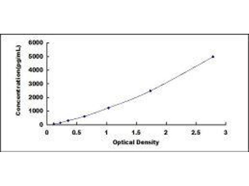 In order to make the calculation easier, we plot the O.D. value of the standard (X-axis) against the known concentration of the standard (Y-axis), although concentration is the independent variable and O.D. value is the dependent variable. However, the O.D. values of the standard curve may vary according to the conditions of assay performance (e.g. operator, pipetting technique, washing technique or temperature effects), plotting log of the data to establish standard curve for each test is recommended. Typical standard curve below is provided for reference only. -