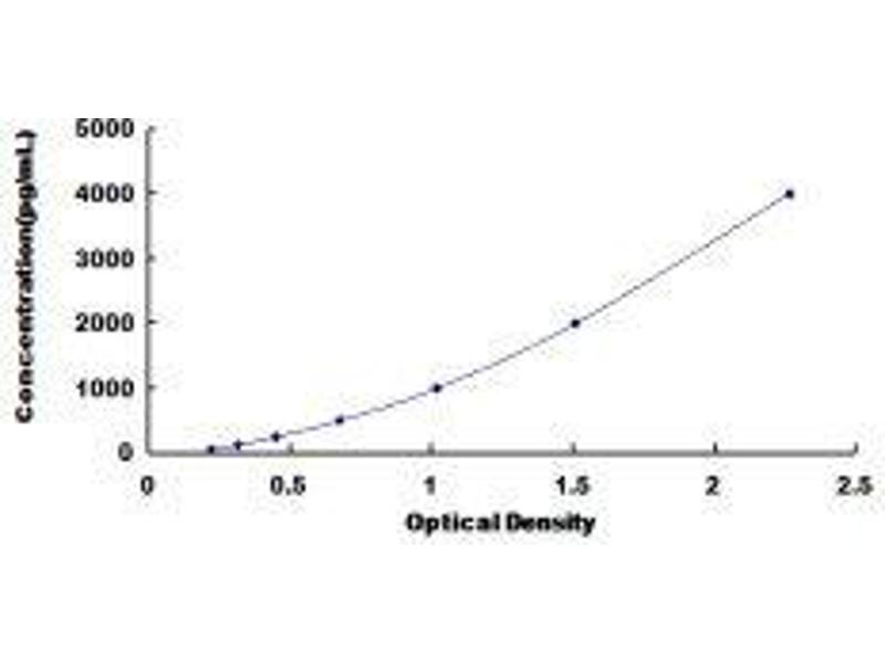 In order to make the calculation easier, we plot the O.D. value of the standard (X-axis) against the known concentration of the standard (Y-axis), although concentration is the independent variable and O.D. value is the dependent variable. However, the O.D. values of the standard curve may vary according to the conditions of assay performance (e.g. operator, pipetting technique, washing technique or temperature effects), plotting log of the data to establish standard curve for each test is recommended. Typical standard curve below is provided for reference only. -