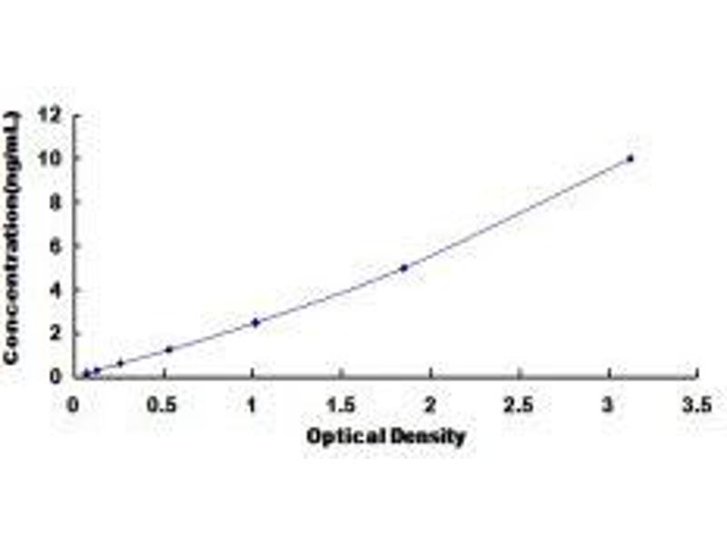 In order to make the calculation easier, we plot the O.D. value of the standard (X-axis) against the known concentration of the standard (Y-axis), although concentration is the independent variable and O.D. value is the dependent variable. However, the O.D. values of the standard curve may vary according to the conditions of assay performance (e.g. operator, pipetting technique, washing technique or temperature effects), plotting log of the data to establish standard curve for each test is recommended. Typical standard curve below is provided for reference only. -