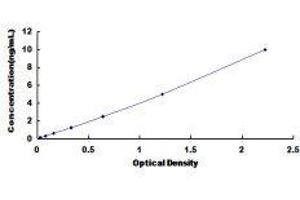 In order to make the calculation easier, we plot the O.D. value of the standard (X-axis) against the known concentration of the standard (Y-axis), although concentration is the independent variable and O.D. value is the dependent variable. However, the O.D. values of the standard curve may vary according to the conditions of assay performance (e.g. operator, pipetting technique, washing technique or temperature effects), plotting log of the data to establish standard curve for each test is recommended. Typical standard curve below is provided for reference only. -