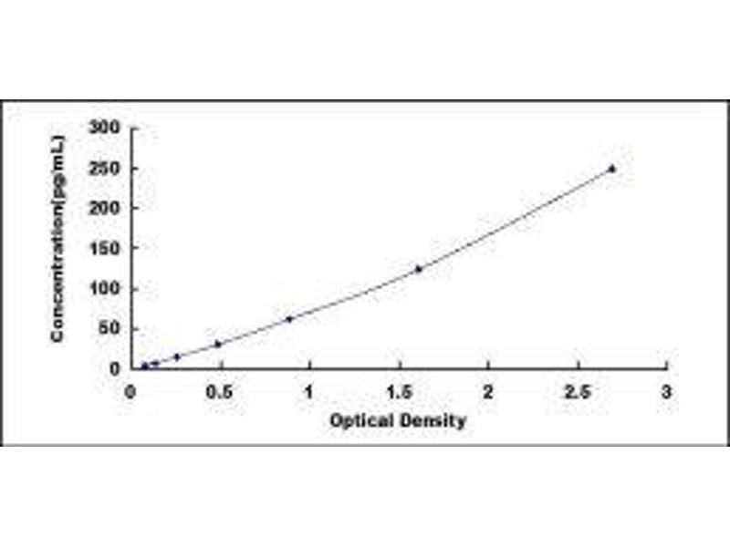 In order to make the calculation easier, we plot the O.D. value of the standard (X-axis) against the known concentration of the standard (Y-axis), although concentration is the independent variable and O.D. value is the dependent variable. However, the O.D. values of the standard curve may vary according to the conditions of assay performance (e.g. operator, pipetting technique, washing technique or temperature effects), plotting log of the data to establish standard curve for each test is recommended. Typical standard curve below is provided for reference only. -
