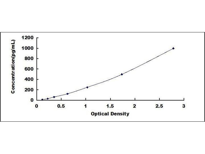 In order to make the calculation easier, we plot the O.D. value of the standard (X-axis) against the known concentration of the standard (Y-axis), although concentration is the independent variable and O.D. value is the dependent variable. However, the O.D. values of the standard curve may vary according to the conditions of assay performance (e.g. operator, pipetting technique, washing technique or temperature effects), plotting log of the data to establish standard curve for each test is recommended. Typical standard curve below is provided for reference only. -