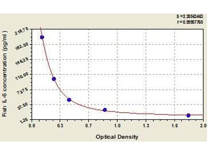 Create a standard curve by reducing the data using computer software capable of generating a four parameter logistic (4-PL) curve fit. As an alternative, construct a standard curve by plotting the mean absorbance for each standard on the x-axis against the concentration on the y-axis and draw a best fit curve through the points on the graph. The data may be linearized by plotting the log of the target antigen concentration versus the log of the O.D. and the best fit line can be determined by regression analysis. This procedure will produce an adequate but less precise fit of the data.