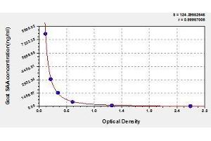 Create a standard curve by reducing the data using computer software capable of generating a four parameter logistic (4-PL) curve fit. As an alternative, construct a standard curve by plotting the mean absorbance for each standard on the x-axis against the concentration on the y-axis and draw a best fit curve through the points on the graph. The data may be linearized by plotting the log of the target antigen concentration versus the log of the O.D. and the best fit line can be determined by regression analysis. This procedure will produce an adequate but less precise fit of the data.