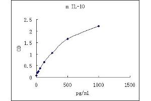 - Interleukin 10 (IL-10), initially designated cytokine synthesis inhibitor, is a pleiotropic cytokine that inhibits the production of a number of cytokines (including IL-1, GM-CSF, TNF, IL-6, IL-8, IL-12 and IFN-γ) by activated Th1 cells, NK cells, and monocytes/macrophages. Mouse IL-10 is produced by a wide variety of cells, including activated Th2 cells, fetal thymocytes, monocytes/macrophages, keratinocytes, B cells, and glial cells (1-3). Mouse IL-10 cDNA encodes a 178 amino acid residue precursor protein with a hydrophobic signal peptide that is cleaved to generate the 160 amino acid residue mature protein (4). At the amino acid sequence level, there is approximately 73 % identity between mouse and rat or mouse and human IL-10. Although human IL-10 is active on mouse cells, mouse IL-10 does not show species cross-reactivity on human cells (1). Herpes viruses, including EBV and equine herpes virus type 2, have been shown to encode viral homologues of IL-10 that exhibit some of the activities of IL-10 on both mouse and human cells (5,6).IL-10 has been shown to inhibit macrophage cytotoxic activity and to stimulate the proliferation and differentiation of B cells, mast cells, and thymic T cells. IL-10 is a potent modulator of monocyte/macrophage function. IL-10 also enhances the release of soluble TNF receptors and inhibits the expression of surface ICAM-1 and B7 (7, 8). Finally, IL-10 has been reported to suppress the synthesis of superoxide anion (9) plus reactive oxygen intermediates (ROI), and either inhibit or facilitate nitric oxide synthesis, depending on the time of exposure to activated macrophages (10). IL-10 has marked effects on B cells. IL-10 also has documented activity on endothelial cells, where it mimics IL-4 (11), and on thymocytes (12) and mast cells, where it acts as a growth costimulator (13, 14).