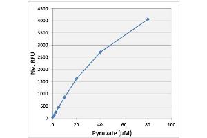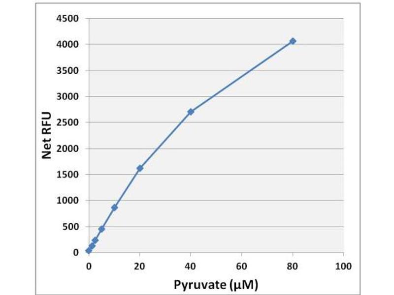 - Compare the net RFU of each sample to the standard curve to determine and extrapolate the quantity of pyruvate present in the sample. Only use values within the range of the standard curve.