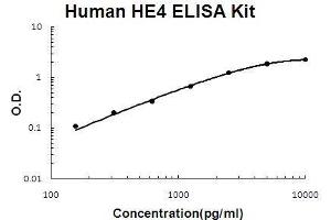 Background: WAP four-disulfide core domain protein 2, also known as Human Epididymis Protein 4 (HE4), is a protein that in humans is encoded by the WFDC2 gene. This gene encodes a protein that is a member of the WFDC domain family. The WFDC domain, or WAP Signature motif, contains eight cysteines forming four disulfide bonds at the core of the protein, and functions as a protease inhibitor in many family members. This gene is expressed in pulmonary epithelial cells, and was also found to be expressed in some ovarian cancers. The encoded protein is a small secretory protein, which may be involved in sperm maturation.