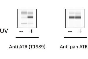 Human Phospho-ATR (Thr1989) and Total ATR ELISA Kit. This assay semi-quantitatively measures ATR phosphorylated at Threonnine-1989 as well as total ATR in cell lysate samples.