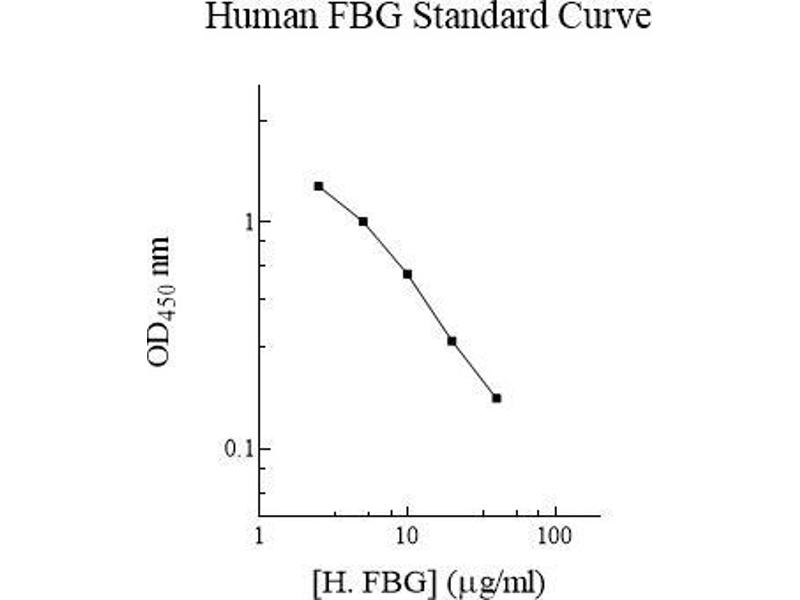 - The AssayMax™ Human Fibrinogen ELISA (Enzyme-Linked Immunosorbent Assay) Kit is designed for detection of FBG in human plasma samples. This assay employs a quantitative competitive enzyme immunoassay technique that measures human FBG in approximately 3 hours. A murine antibody specific for human FBG has been pre-coated onto a 96-well microplate with removable strips. FBG in standards and samples is competed with a biotinylated human FBG protein sandwiched by the immobilized antibody and streptavidin-peroxidase (SP) conjugate. All unbound material is washed away and a peroxidase enzyme substrate is added. The color development is stopped and the intensity of the color is measured.