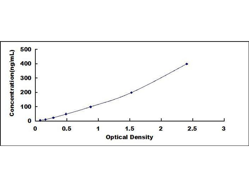 - Standard - Reconstitute the Standard with 1.0 mL of Standard Diluent, keep for 10 minutes at room temperature, shake gently (not to foam). The concentration of the standard in the stock solution is 400 ng/mL. Prepare 7 tubes containing 0.5 mL Standard Diluent and produce a double dilution series. Mix each tube thoroughly before the next transfer. Set up 7 points of diluted standard such as 400 ng/mL, 200 ng/mL, 100 ng/mL, 50 ng/mL, 25 ng/mL, 12.5 ng/mL, 6.25 ng/mL, and the last microcentrifuge tube with Standard Diluent is the blank as 0 ng/mL.