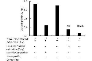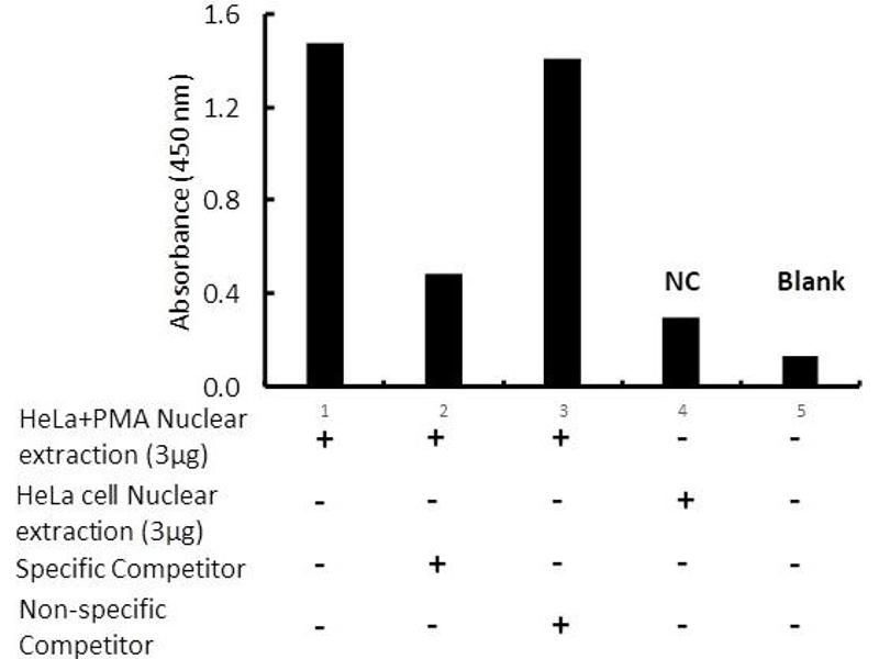 Human ELK-1 Transcription Factor Activity Assay. This assay uses a dsDNA coated plate with canonical ELK-1 binding sequences to semi-quantitatively detect active ELK-1 in lysates or nuclear extracts.
