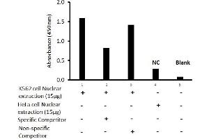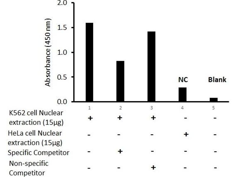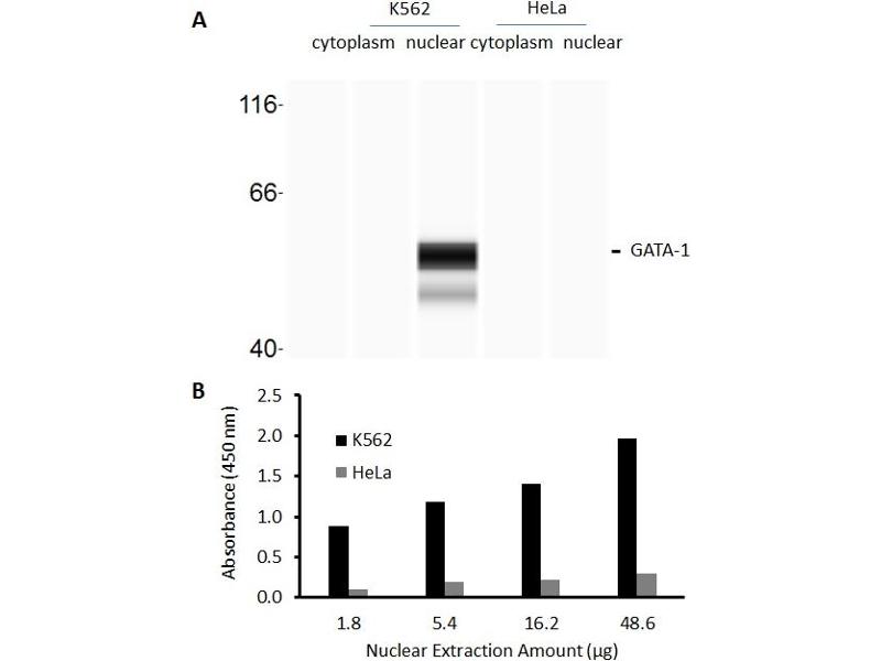 The olionucleotide/antibody pair provided in this kit recognizes human GATA-1 in whole lysates and nuclear extracts.