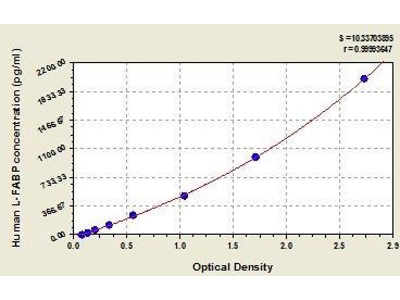 This assay employs the quantitative sandwich enzyme immunoassay technique. Antibody specific for L-FABP has been pre-coated onto a microplate. Standards and samples are pipetted into the wells and any L-FABP present is bound by the immobilized antibody. After removing any unbound substances, a biotin-conjugated antibody specific for L-FABP is added to the wells. After washing, avidin conjugated Horseradish Peroxidase (HRP) is added to the wells. Following a wash to remove any unbound avidin-enzyme reagent, a substrate solution is added to the wells and color develops in proportion to the amount of L-FABP bound in the initial step. The color development is stopped and the intensity of the color is measured.