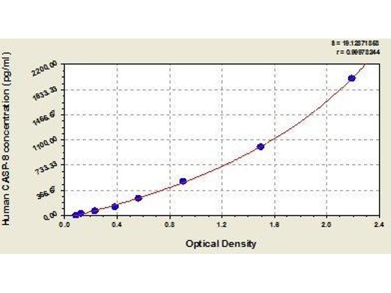 - This assay employs the quantitative sandwich enzyme immunoassay technique. Antibody specific for CASP-8 has been pre-coated onto a microplate. Standards and samples are pipetted into the wells and any CASP-8 present is bound by the immobilized antibody. After removing any unbound substances, a biotin-conjugated antibody specific for CASP-8 is added to the wells. After washing, avidin conjugated Horseradish Peroxidase (HRP) is added to the wells. Following a wash to remove any unbound avidin-enzyme reagent, a substrate solution is added to the wells and color develops in proportion to the amount of CASP-8 bound in the initial step. The color development is stopped and the intensity of the color is measured.
