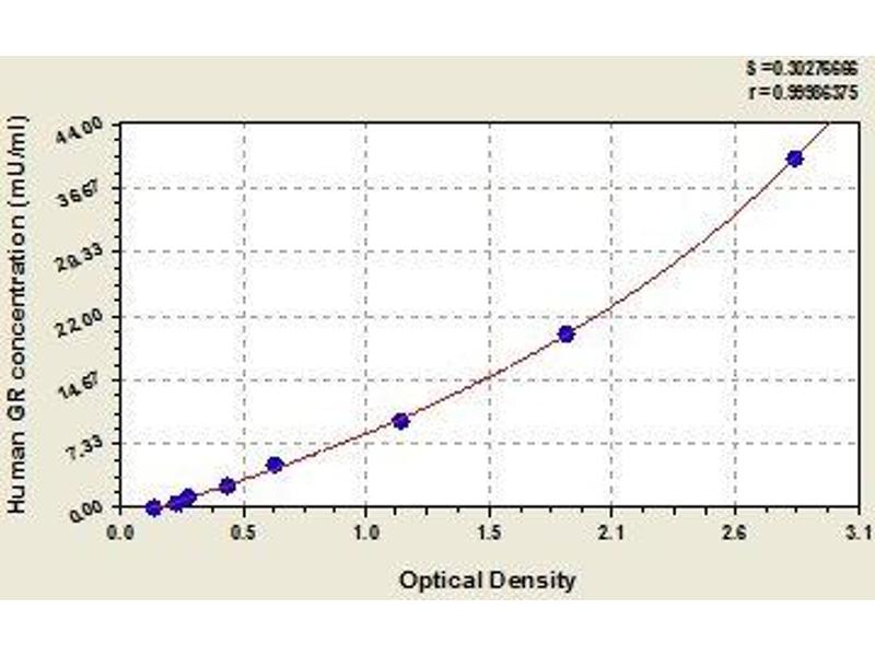 - This assay employs the quantitative sandwich enzyme immunoassay technique. Antibody specific for GR has been pre-coated onto a microplate. Standards and samples are pipetted into the wells and any GR present is bound by the immobilized antibody. After removing any unbound substances, a biotin-conjugated antibody specific for GR is added to the wells. After washing, avidin conjugated Horseradish Peroxidase (HRP) is added to the wells. Following a wash to remove any unbound avidin-enzyme reagent, a substrate solution is added to the wells and color develops in proportion to the amount of GR bound in the initial step. The color development is stopped and the intensity of the color is measured.