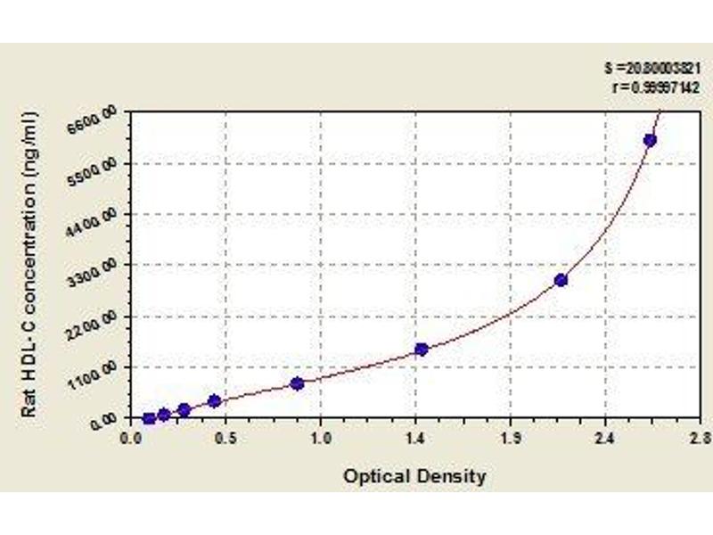 This assay employs the quantitative sandwich enzyme immunoassay technique. Antibody specific for HDL-C has been pre-coated onto a microplate. Standards and samples are pipetted into the wells and any HDL-C present is bound by the immobilized antibody. After removing any unbound substances, a biotin-conjugated antibody specific for HDL-C is added to the wells. After washing, avidin conjugated Horseradish Peroxidase (HRP) is added to the wells. Following a wash to remove any unbound avidin-enzyme reagent, a substrate solution is added to the wells and color develops in proportion to the amount of HDL-C bound in the initial step. The color development is stopped and the intensity of the color is measured.