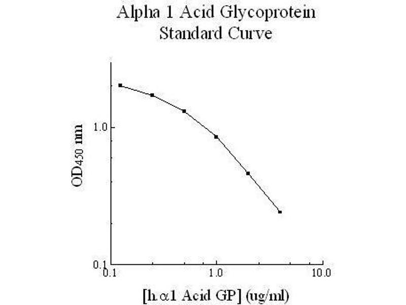 Prepare all reagents, working standards and samples as instructed. Bring all reagents to room temperature before use. The assay is performed at room temperature (20 - 30 °C). Remove excess microplate strips from the plate frame and return them immediately to the foil pouch with desiccant inside. Reseal the pouch securely to minimize exposure to water vapor and store in a vacuum desiccator. Add 25 µL of standard or sample per well, and immediately add 25 µL of Biotinylated AGP to each well (on top of the Standard or sample) and mix gently. Cover wells with a sealing tape and incubate for two hours. Start the timer after the last sample addition. Wash five times with 200 µL of Wash Buffer. Invert the plate and decant the contents, and hit it 4-5 times on absorbent paper towel to complete remove liquid at each step. Add 50 µL of Streptavidin-Peroxidase Conjugate to each well and incubate for 30 minutes. Turn on the microplate reader and set up the program in advance. Wash five times with 200 µL of Wash Buffer. Add 50 µL of Chromogen Substrate per well and incubate for 10 minutes or till the optimal blue color density develops. Gently tap plate to ensure thorough mixing and break the bubbles in the well with pipette tip. Add 50 µL of Stop Solution to each well. The color will change from blue to yellow. Read the absorbance on a microplate reader at a wavelength of 450 nm immediately. Please note that after the reaction is stopped for about 10 minutes, some black particles may be generated at high concentration point, which will reduce the readings.
