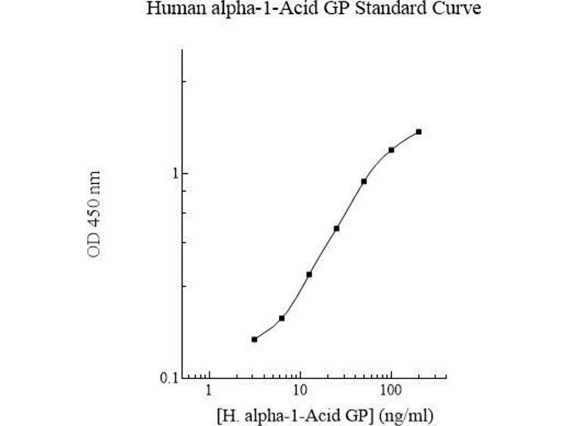 Prepare all reagents, working standards and samples as instructed. Bring all reagents to room temperature before use. The assay is performed at room temperature (20 - 30 °C). Remove excess microplate strips from the plate frame and return them immediately to the foil pouch with desiccant inside. Reseal the pouch securely to minimize exposure to water vapor and store in a vacuum desiccator. Add 50 µL of Standard or sample per well. Cover wells with a sealing tape and incubate for two hours. Start the timer after the last sample addition. Wash five times with 200 µL of Wash Buffer. Invert the plate and decant the contents, and hit it 4-5 times on absorbent paper towel to complete remove liquid at each step. Add 50 µL of Biotinylated AGP Antibody to each well and incubate for one hour. Wash five times with 200 µL of Wash Buffer as above. Add 50 µL of Streptavidin-Peroxidase Conjugate per well and incubate for 30 minutes. Turn on the microplate reader and set up the program in advance. Wash five times with 200 µL of Wash Buffer as above. Add 50 µL of Chromogen Substrate per well and incubate for about 10 minutes or till the optimal blue color density develops. Gently tap the plate to ensure thorough mixing and break the bubbles in the well with pipette tip. Add 50 µL of Stop Solution to each well. The color will change from blue to yellow. Read the absorbance on a microplate reader at a wavelength of 450 nm immediately. Please note that some unstable black particles may be generated at high concentration points after stopping the reaction for about 10 minutes, which will reduce the readings.