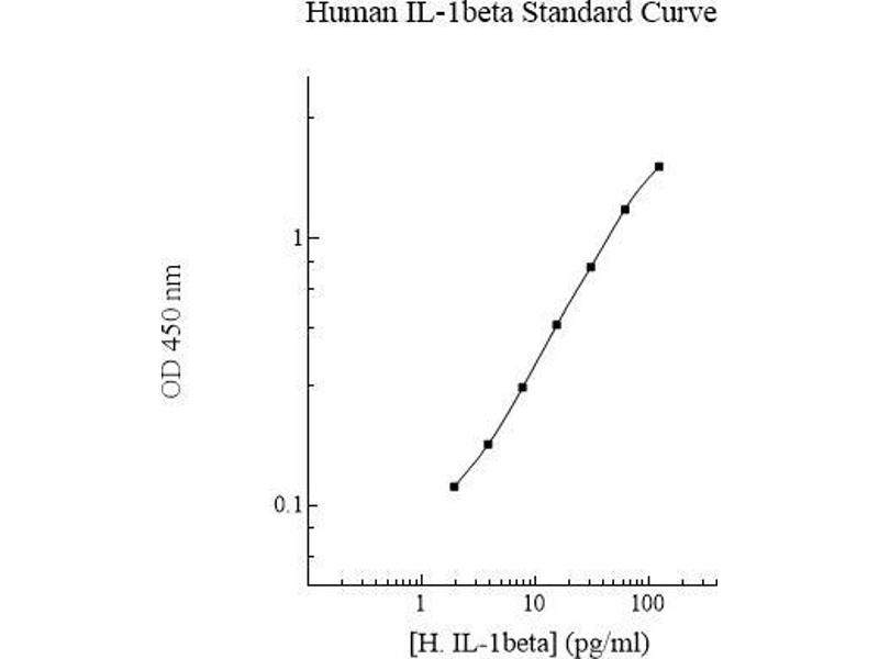 Prepare all reagents, working standards and samples as instructed. Bring all reagents to room temperature before use. The assay is performed at room temperature (20 - 30 °C). Remove excess microplate strips from the plate frame and return them immediately to the foil pouch with desiccant inside. Reseal the pouch securely to minimize exposure to water vapor and store in a vacuum desiccator. Add 50 µL of Standard or sample per well. Cover wells with a sealing tape and incubate for two hours. Start the timer after the last sample addition. Wash five times with 200 µL of Wash Buffer manually. Invert the plate each time and decant the contents, hit it 4-5 times on absorbent paper towel to completely remove the liquid. If using a machine wash six times with 300 µL of Wash Buffer and then invert the plate, decant the contents, hit it 4-5 times on absorbent paper towel to completely remove the liquid. Add 50 µL of Biotinylated IL-1beta Antibody to each well and incubate for two hours. Wash a microplate as described above. Add 50 µL of Streptavidin-Peroxidase Conjugate per well and incubate for 30 minutes. Turn on the microplate reader and set up the program in advance. Wash a microplate as described above. Add 50 µL of Chromogen Substrate per well and incubate for about 10 minutes or until the optimal blue color density develops. Gently tap the plate to ensure thorough mixing and break the bubbles in the well with pipette tip. Add 50 µL of Stop Solution to each well. The color will change from blue to yellow. Add 50 µL of Stop Solution to each well. The color will change from blue to yellow. 3 Read the absorbance on a microplate reader at a wavelength of 450 nm immediately. If wavelength correction is available, subtract readings at 570 nm from those at 450 nm to correct optical imperfections. Otherwise, read the plate at 450 nm only. Please note that some unstable black particles may be generated at high concentration points after stopping the reaction for about 10 minutes, which will reduce the readings