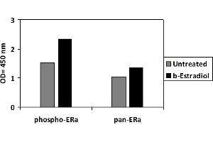 - Human Phospho-Estrogen receptor (Ser118) and Total Estrogen receptor ELISA Kit. This assay semi-quantitatively measures Estrogen receptor phosphorylated at Serine-118 as well as total Estrogen receptor in cell lysate samples.