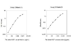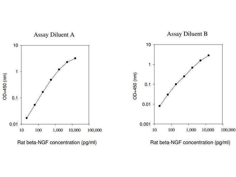 Typical Data: These standard curves are for demonstration only. A standard curve must be run with each assay. Assay Diluent A Rat beta-NGF concentration (pg/mL) O D =4 50 (n m ) 0.01 0.1 1 10 10 100 1,000 10,000 100,000 Assay Diluent B Rat beta-NGF concentration (pg/mL) O D =4 50 (n m ) 0.001 0.01 0.1 1 10 10 100 1,000 10,000 100,000