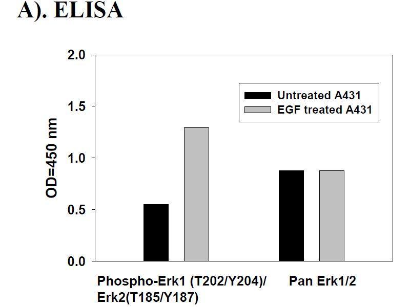 - The antibody pair provided in this kit recognizes human, mouse and rat Phospho-Erk1 (pThr202/pTyr204) + Erk2 (pTyr185/187).