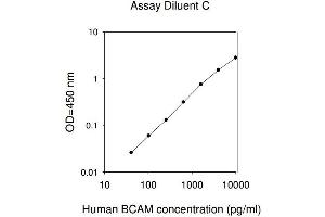 Recovery: Recovery was determined by spiking various levels of BCAM into normal human serum, plasma and cell culture media. Mean recoveries are as follows: Sample Type Average % Recovery Range ( %) Serum 76.07 68-86 Plasma 86.57 80-94 Cell culture media 84.81 76-92