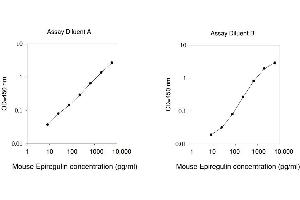 Typical Data: These standard curves are for demonstration only. A standard curve must be run with each assay. Assay Diluent A Mouse Epiregulin concentration (pg/mL) O D =4 50 n m 0.01 0.1 1 10 1 10 100 1000 10,000 Assay Diluent B Mouse Epiregulin concentration (pg/mL) O D =4 50 n m 0.01 0.1 1 10 1 10 100 1000 10,000