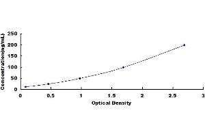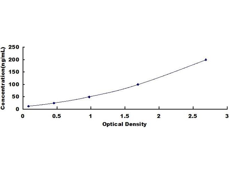 In order to make the calculation easier, we plot the O.D. value of the standard (X-axis) against the known concentration of the standard (Y-axis), although concentration is the independent variable and O.D. value is the dependent variable. However, the O.D. values of the standard curve may vary according to the conditions of assay performance (e.g. operator, pipetting technique, washing technique or temperature effects), plotting log of the data to establish standard curve for each test is recommended. Typical standard curve below is provided for reference only. -