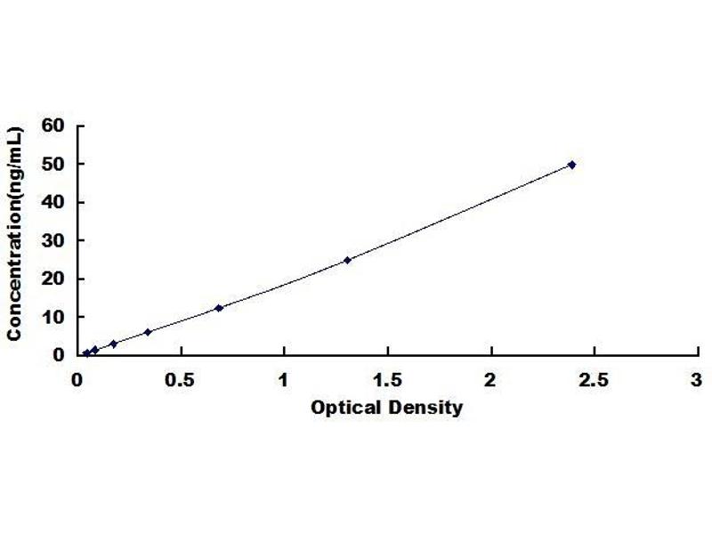 - Standard - Reconstitute the Standard with 1.0 mL of Standard Diluent, keep for 10 minutes at room temperature, shake gently (not to foam). The concentration of the standard in the stock solution is 50ng/mL. Then prepare 7 tubes containing 0.5 mL Standard Diluent and use the diluted standard to produce a double dilution series. Mix each tube thoroughly before the next transfer. Set up 7 points of diluted standard such as 50 ng/mL, 25 ng/mL, 12.5 ng/mL, 6.25 ng/mL, 3.12 ng/mL, 1.56 ng/mL, 0.78 ng/mL, and the last microcentrifuge tube with Standard Diluent is the blank as 0 ng/mL.