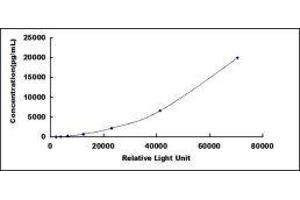In order to make the calculation easier, we plot the RLU value of the standard (X-axis) against the known concentration of the standard (Y-axis), although concentration is indeed the independent variable while RLU value is the dependent variable. Further, in this part, in order to help the customer perform the assay more visual, we provide the customer with the raw data (not the log of data). However, plotting log of the data to construct the curve will be recommended. The RLU values of the standard curve may vary according to the conditions of assay performance (e.g. operator, pipetting technique, washing technique or temperature effects). This curve is provided for demonstration only. The customers should establish their own standard curve for each test conducted. -
