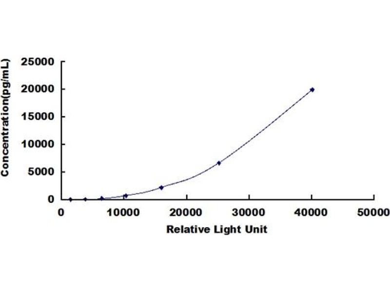 In order to make the calculation easier, we plot the RLU value of the standard (X-axis) against the known concentration of the standard (Y-axis), although concentration is indeed the independent variable while RLU value is the dependent variable. Further, in this part, in order to help the customer perform the assay more visual, we provide the customer with the raw data (not the log of data). However, plotting log of the data to construct the curve will be recommended. The RLU values of the standard curve may vary according to the conditions of assay performance (e.g. operator, pipetting technique, washing technique or temperature effects). This curve is provided for demonstration only. The customers should establish their own standard curve for each test conducted. -