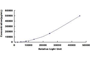 In order to make the calculation easier, we plot the RLU value of the standard (X-axis) against the known concentration of the standard (Y-axis), although concentration is indeed the independent variable while RLU value is the dependent variable. Further, in this part, in order to help the customer perform the assay more visual, we provide the customer with the raw data (not the log of data). However, plotting log of the data to construct the curve will be recommended. The RLU values of the standard curve may vary according to the conditions of assay performance (e.g. operator, pipetting technique, washing technique or temperature effects). This curve is provided for demonstration only. The customers should establish their own standard curve for each test conducted. -