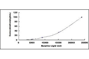 In order to make the calculation easier, we plot the RLU value of the standard (X-axis) against the known concentration of the standard (Y-axis), although concentration is indeed the independent variable while RLU value is the dependent variable. Further, in this part, in order to help the customer perform the assay more visual, we provide the customer with the raw data (not the log of data). However, plotting log of the data to construct the curve will be recommended. The RLU values of the standard curve may vary according to the conditions of assay performance (e.g. operator, pipetting technique, washing technique or temperature effects). This curve is provided for demonstration only. The customers should establish their own standard curve for each test conducted. -
