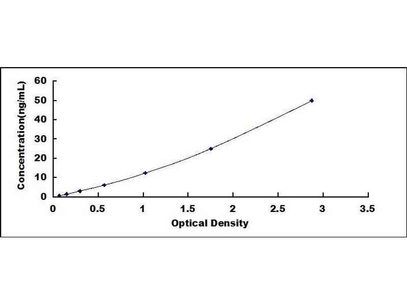 - Standard - Reconstitute the Standard with 1.0 mL of Standard Diluent, keep for 10 minutes at room temperature, shake gently (not to foam). The concentration of the standard in the stock solution is 100 ng/mL. Firstly dilute the stock solution to 50 ng/mL and the diluted standard serves as the highest standard (50 ng/mL). Then prepare 7 tubes containing 0.5 mL Standard Diluent and use the diluted standard to produce a double dilution series. Mix each tube thoroughly before the next transfer. Set up 7 points of diluted standard such as 50 ng/mL, 25 ng/mL, 12.5 ng/mL, 6.25 ng/mL, 3.12 ng/mL, 1.56 ng/mL, 0.78 ng/mL, and the last microcentrifuge tube with Standard Diluent is the blank as 0 ng/mL.