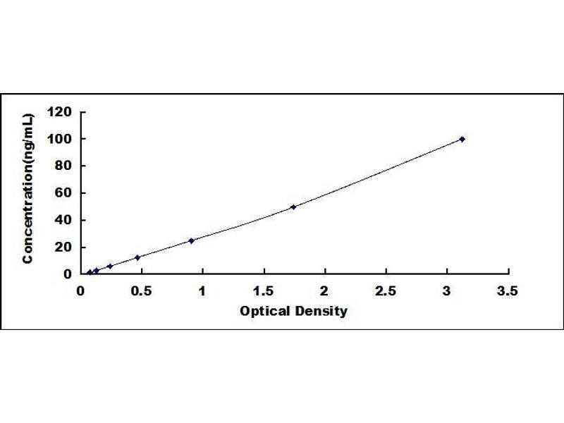 - Standard - Reconstitute the Standard with 1.0 mL of Standard Diluent, keep for 10 minutes at room temperature, shake gently (not to foam). The concentration of the standard in the stock solution is 100 ng/mL. Prepare 7 tubes containing 0.5 mL Standard Diluent and produce a double dilution series. Mix each tube thoroughly before the next transfer. Set up 7 points of diluted standard such as 100 ng/mL, 50 ng/mL, 25 ng/mL, 12.5 ng/mL, 6.25 ng/mL, 3.12 ng/mL, 1.56 ng/mL, and the last microcentrifuge tube with Standard Diluent is the blank as 0 ng/mL.