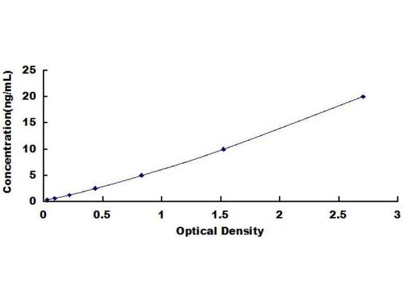 2. Standard - Reconstitute the Standard with 1.0mL of Standard Diluent, kept for 10 minutes at room temperature, shake gently (not to foam). The concentration of the standard in the stock solution is 20ng/mL. Prepare 7 tubes containing 0.5mL Standard Diluent and produce a double dilution series. Mix each tube thoroughly before the next transfer. Set up 7 pointsof diluted standard such as 20ng/mL, 10ng/mL, 5ng/mL, 2.5ng/mL, 1.25ng/mL, 0.625ng/mL, 0.312ng/mL, and the last tube with Standard Diluent is the blank as 0ng/mL./li>