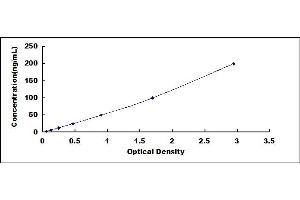 In order to make the calculation easier, we plot the O.D. value of the standard (X-axis) against the log of concentration of the standard (Y-axis), although concentration is the independent variable and O.D. value is the dependent variable. The O.D. values of the standard curve may vary according to the conditions of assay performance (e.g. operator, pipetting technique, washing technique or temperature effects). Typical standard curve below is provided for reference only.