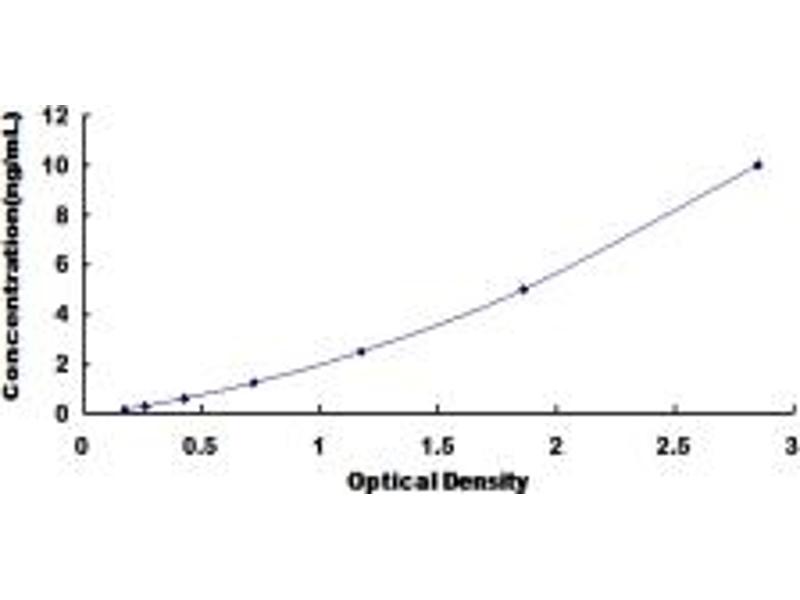 2. Standard - Reconstitute the Standard with 1.0 mL of Standard Diluent, keep for 10 minutes at room temperature, shake gently (not to foam). The concentration of the standard in the stock solution is 10 ng/mL. Prepare 7 tubes containing 0.5 mL Standard Diluent and produce a double dilution series. Mix each tube thoroughly before the next transfer. Set up 7 points of diluted standard such as 10 ng/mL, 5 ng/mL, 2.5 ng/mL, 1.25 ng/mL, 0.625 ng/mL, 0.312 ng/mL, 0.156 ng/mL, and the last microcentrifuge tube with Standard Diluent is the blank as 0 ng/mL.
