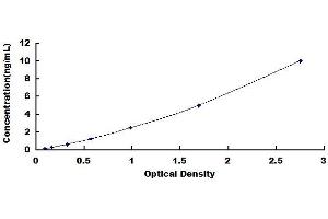2. Standard - Reconstitute the Standard with 1.0 mL of Standard Diluent, keep for 10 minutes at room temperature, shake gently (not to foam). The concentration of the standard in the stock solution is 20 ng/mL. Firstly dilute the stock solution to 10 ng/mL and the diluted standard serves as the highest standard (10 ng/mL). Then prepare 7 tubes containing 0.5 mL Standard Diluent and use the diluted standard to produce a double dilution series. Mix each tube thoroughly before the next transfer. Set up 7 points of diluted standard such as 10 ng/mL, 5 ng/mL, 2.5 ng/mL, 1.25 ng/mL, 0.625 ng/mL, 0.312 ng/mL, 0.156 ng/mL, and the last microcentrifuge tube with Standard Diluent is the blank as 0 ng/mL.