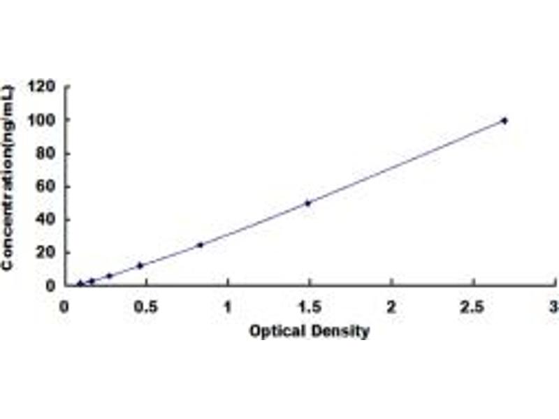 - Standard - Reconstitute the Standard with 1.0 mL of Standard Diluent, keep for 10 minutes at room temperature, shake gently (not to foam). The concentration of the standard in the stock solution is 100 ng/mL. Prepare 7 tubes containing 0.5 mL Standard Diluent and produce a double dilution series. Mix each tube thoroughly before the next transfer. Set up 7 points of diluted standard such as 100 ng/mL, 50 ng/mL, 25 ng/mL, 12.5 ng/mL, 6.25 ng/mL, 3.12 ng/mL, 1.56 ng/mL, and the last microcentrifuge tube with Standard Diluent is the blank as 0 ng/mL.