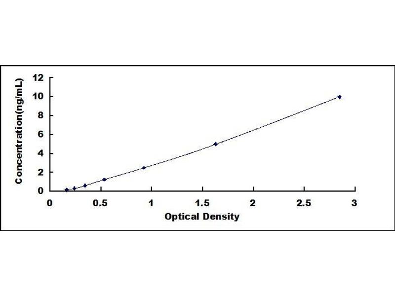 - Standard - Reconstitute the Standard with 1.0 mL of Standard Diluent, keep for 10 minutes at room temperature, shake gently (not to foam). The concentration of the standard in the stock solution is 40 ng/mL. Firstly dilute the stock solution to 10 ng/mL and the diluted standard serves as the highest standard (10 ng/mL). Then prepare 7 tubes containing 0.5 mL Standard Diluent and use the diluted standard to produce a double dilution series. Mix each tube thoroughly before the next transfer. Set up 7 points of diluted standard such as 10 ng/mL, 5 ng/mL, 2.5 ng/mL, 1.25 ng/mL, 0.625 ng/mL, 0.312 ng/mL, 0.156 ng/mL, and the last microcentrifuge tube with Standard Diluent is the blank as 0 ng/mL.