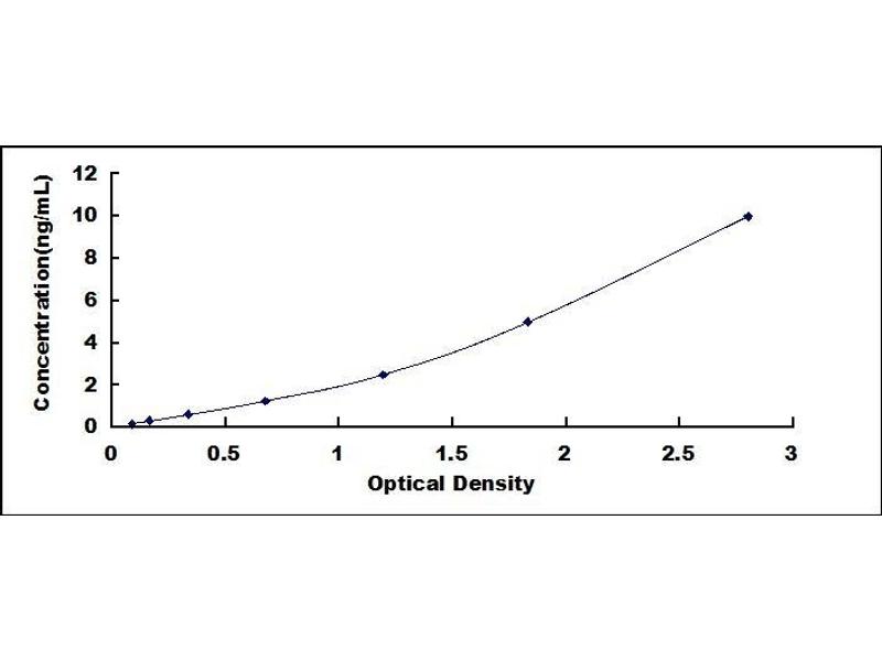 2. Standard - Reconstitute the Standard with 1.0 mL of Standard Diluent, keep for 10 minutes at room temperature, shake gently (not to foam). The concentration of the standard in the stock solution is 10 ng/mL. Prepare 7 tubes containing 0.5 mL Standard Diluent and produce a double dilution series. Mix each tube thoroughly before the next transfer. Set up 7 points of diluted standard such as 10 ng/mL, 5 ng/mL, 2.5 ng/mL, 1.25 ng/mL, 0.625 ng/mL, 0.312 ng/mL, 0.156 ng/mL, and the last microcentrifuge tube with Standard Diluent is the blank as 0 ng/mL.