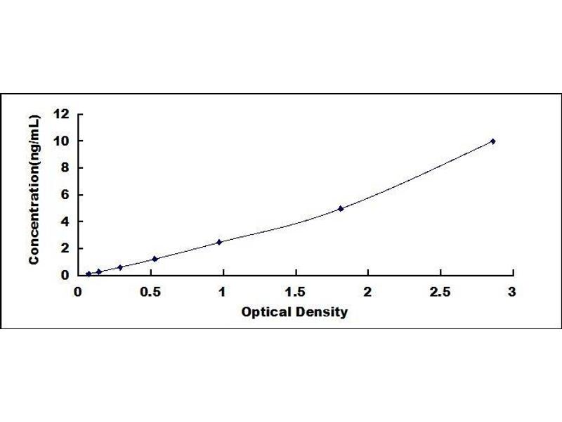 2. Standard - Reconstitute the Standard with 0.5 mL of Standard Diluent, keep for 10 minutes at room temperature, shake gently (not to foam). The concentration of the standard in the stock solution is 10 ng/mL. Prepare 7 tubes containing 0.25 mL Standard Diluent and produce a double dilution series. Mix each tube thoroughly before the next transfer. Set up 7 points of diluted standard such as 10 ng/mL, 5 ng/mL, 2.5 ng/mL, 1.25 ng/mL, 0.625 ng/mL, 0.312 ng/mL, 0.156 ng/mL, and the last microcentrifuge tube with Standard Diluent is the blank as 0 ng/mL.