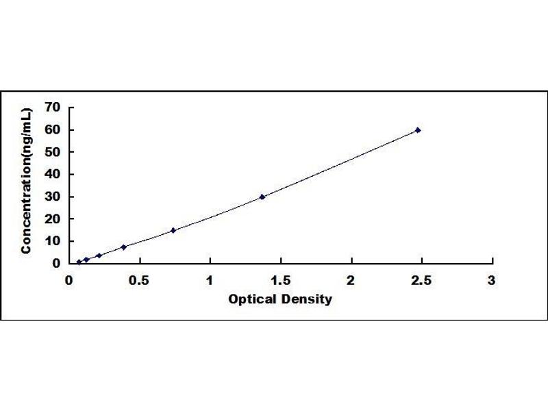 - Standard - Reconstitute the Standard with 1.0 mL of Standard Diluent, keep for 10 minutes at room temperature, shake gently (not to foam). The concentration of the standard in the stock solution is 60 ng/mL. Prepare 7 tubes containing 0.5 mL Standard Diluent and produce a double dilution series. Mix each tube thoroughly before the next transfer. Set up 7 points of diluted standard such as 60 ng/mL, 30 ng/mL, 15 ng/mL, 7.5 ng/mL, 3.75 ng/mL, 1.88 ng/mL, 0.94 ng/mL, and the last microcentrifuge tube with Standard Diluent is the blank as 0 ng/mL.