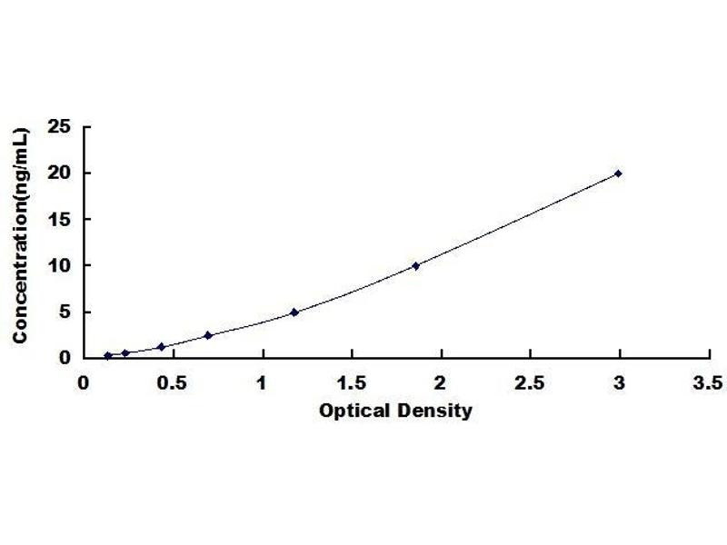 - Standard - Reconstitute the Standard with 1.0 mL of Standard Diluent, keep for 10 minutes at room temperature, shake gently (not to foam). The concentration of the standard in the stock solution is 80 ng/mL. Firstly dilute the stock solution to 20 ng/mL and the diluted standard serves as the highest standard (20 ng/mL). Then prepare 7 tubes containing 0.5 mL Standard Diluent and use the diluted standard to produce a double dilution series. Mix each tube thoroughly before the next transfer. Set up 7 points of diluted standard such as 20 ng/mL, 10 ng/mL, 5 ng/mL, 2.5 ng/mL, 1.25 ng/mL, 0.625 ng/mL, 0.312 ng/mL, and the last microcentrifuge tube with Standard Diluent is the blank as 0 ng/mL.