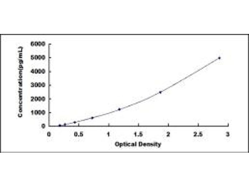 2. Standard - Reconstitute the Standard with 1.0 mL of Standard Diluent, keep for 10 minutes at room temperature, shake gently (not to foam). The concentration of the standard in the stock solution is 5,000pg/mL. Prepare 7 tubes containing 0.5 mL Standard Diluent and produce a double dilution series. Mix each tube thoroughly before the next transfer. Set up 7 points of diluted standard such as 5,000pg/mL, 2,500pg/mL, 1,250pg/mL, 625pg/mL, 312pg/mL, 156pg/mL, 78pg/mL, and the last microcentrifuge tube with Standard Diluent is the blank as 0pg/mL.