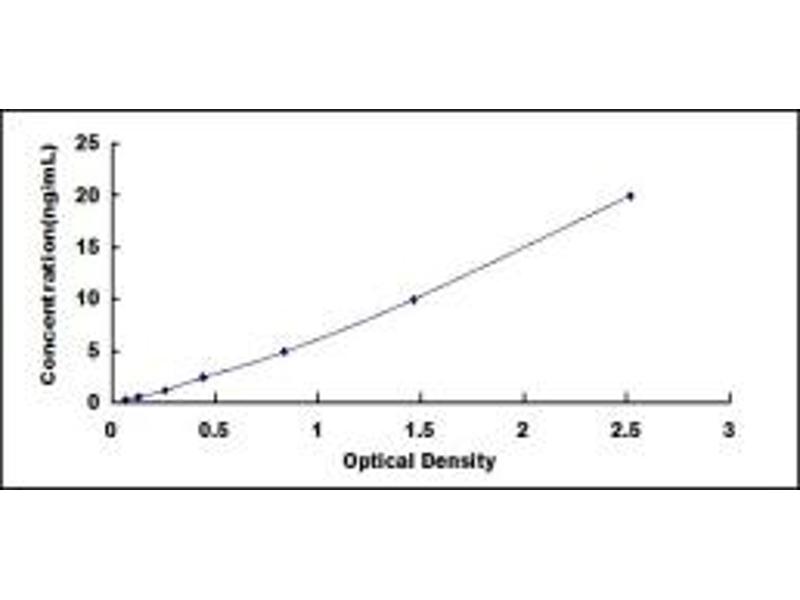 - Standard - Reconstitute the Standard with 1.0 mL of Standard Diluent, keep for 10 minutes at room temperature, shake gently (not to foam). The concentration of the standard in the stock solution is 80 ng/mL. Firstly dilute the stock solution to 20 ng/mL and the diluted standard serves as the highest standard (20 ng/mL). Then prepare 7 tubes containing 0.5 mL Standard Diluent and use the diluted standard to produce a double dilution series. Mix each tube thoroughly before the next transfer. Set up 7 points of diluted standard such as 20 ng/mL, 10 ng/mL, 5 ng/mL, 2.5 ng/mL, 1.25 ng/mL, 0.625 ng/mL, 0.312 ng/mL, and the last microcentrifuge tube with Standard Diluent is the blank as 0 ng/mL.