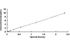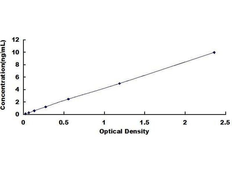 - Standard - Reconstitute the Standard with 1.0 mL of Standard Diluent, keep for 10 minutes at room temperature, shake gently (not to foam). The concentration of the standard in the stock solution is 40 ng/mL. Firstly dilute the stock solution to 10 ng/mL and the diluted standard serves as the highest standard (10 ng/mL). Then prepare 7 tubes containing 0.5 mL Standard Diluent and use the diluted standard to produce a double dilution series. Mix each tube thoroughly before the next transfer. Set up 7 points of diluted standard such as 10 ng/mL, 5 ng/mL, 2.5 ng/mL, 1.25 ng/mL, 0.625 ng/mL, 0.312 ng/mL, 0.156 ng/mL, and the last microcentrifuge tube with Standard Diluent is the blank as 0 ng/mL.
