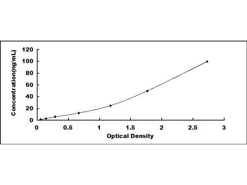 - Standard - Reconstitute the Standard with 1.0 mL of Standard Diluent, keep for 10 minutes at room temperature, shake gently (not to foam). The concentration of the standard in the stock solution is 1,000 ng/mL. Firstly dilute the stock solution to 100 ng/mL and the diluted standard serves as the highest standard (100 ng/mL). Then prepare 7 tubes containing 0.5 mL Standard Diluent and use the diluted standard to produce a double dilution series. Mix each tube thoroughly before the next transfer. Set up 7 points of diluted standard such as 100 ng/mL, 50 ng/mL, 25 ng/mL, 12.5 ng/mL, 6.25 ng/mL, 3.12 ng/mL, 1.56 ng/mL, and the last microcentrifuge tube with Standard Diluent is the blank as 0 ng/mL.